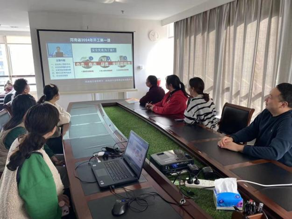為認真貫徹習近平總書記關于安全生產(chǎn)重要指示精神,全面落實黨中央、國務院和省委、省政府決策部署,切實做好春節(jié)后復工復產(chǎn)企業(yè)的安全生產(chǎn)工作,有效杜絕準備不充分、員工精神狀態(tài)不佳、設備故障運行、安全管理不到位等問題引發(fā)的生產(chǎn)安全事故,確保復工復產(chǎn)安全, 全面恢復現(xiàn)場施工,保證項目施工進度,壓實項目、監(jiān)理、總分包管理責任。建投集團2月28日上午按照省、市安委會及城發(fā)集團統(tǒng)一要求,組織控股公司、項目部留守人員及施工、監(jiān)理單位共計129人統(tǒng)一收看“河南省 2024 年開工第一課講安全”專題講座直播和安全生產(chǎn)責任在肩安全生產(chǎn)警示教育片。