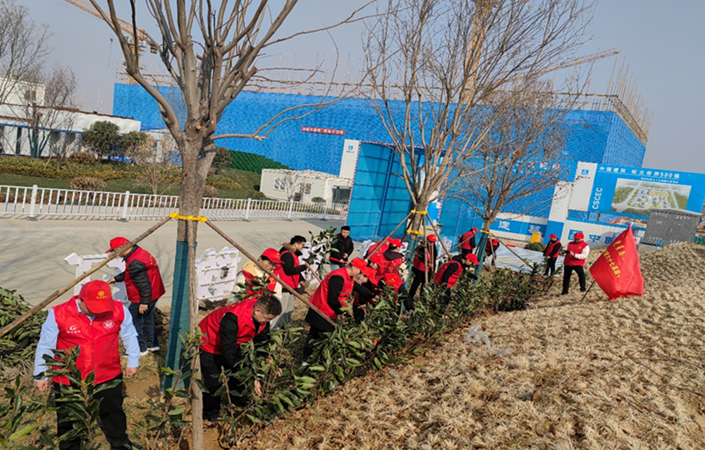 黨員志愿服務(wù)隊(duì)人員分工明確,配合默契。挖坑、搬運(yùn)、植樹、培土澆水,井井有條,忙而不亂。在志愿者的共同努力下,細(xì)心栽下碧綠的樹苗,在暖暖的陽(yáng)光下格外顯眼,仿佛為項(xiàng)目披上一層新裝。